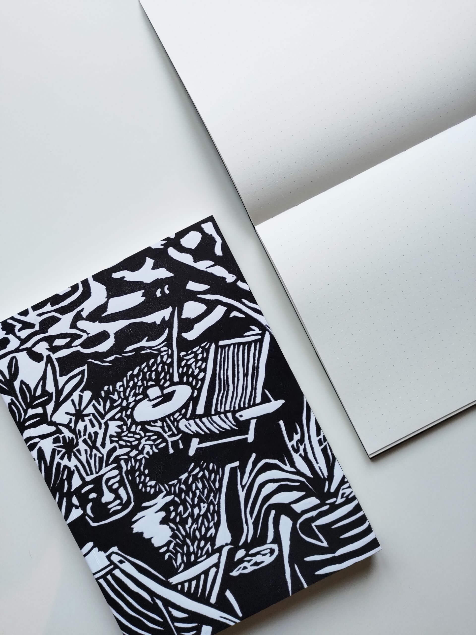 Lino, jak się może domyślacie, pochodzi od Linorytu. Tą właśnie techniką wykonane będą okładki – ręcznie odbijane! Dzięki czemu każdy notes z tej serii będzie unikatowy.